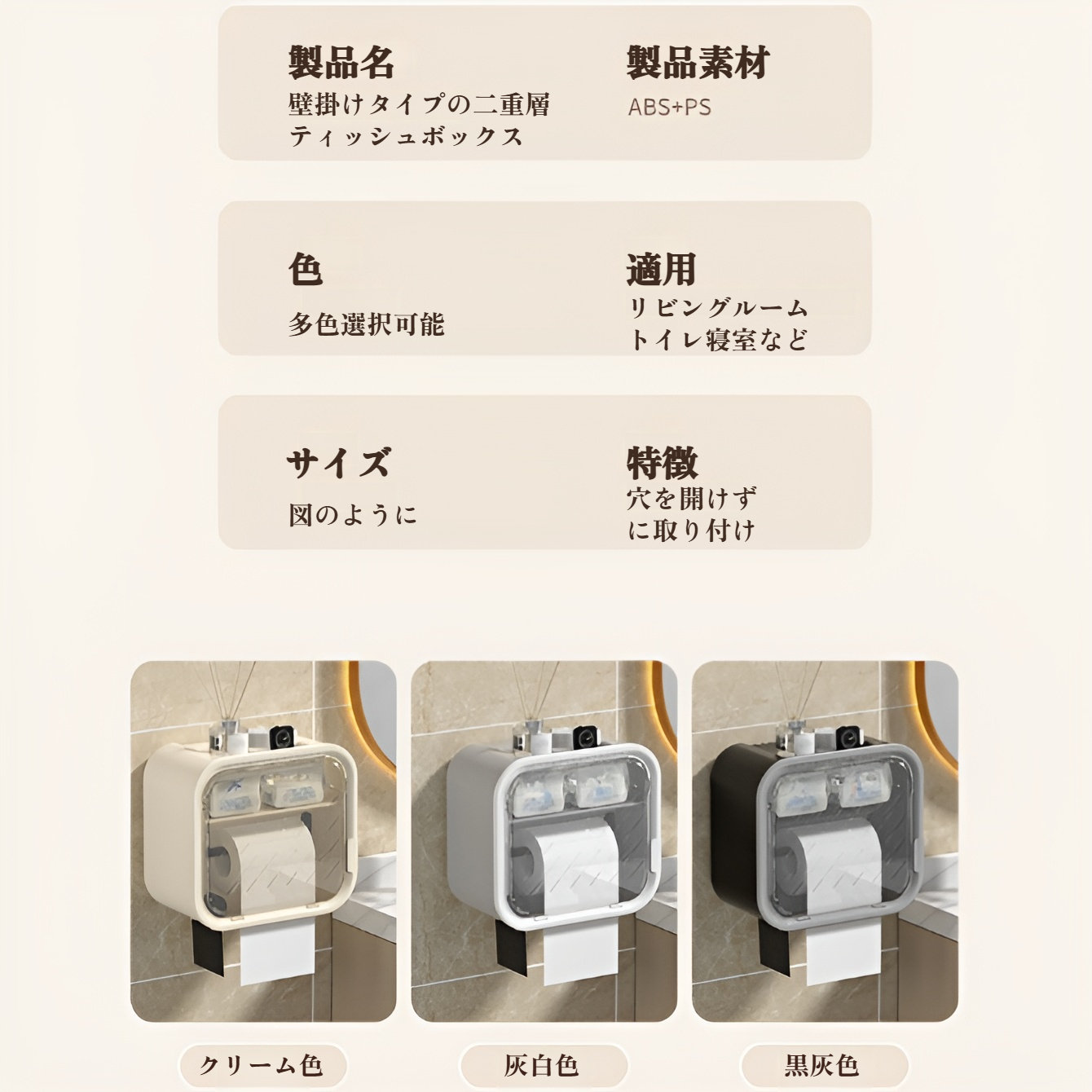 トイレットペーパーボックス、トイレットペーパーボックス、ティッシュホルダー、多機能収納ラック、ペーパーボックス、生理用ナプキン収納ボックス